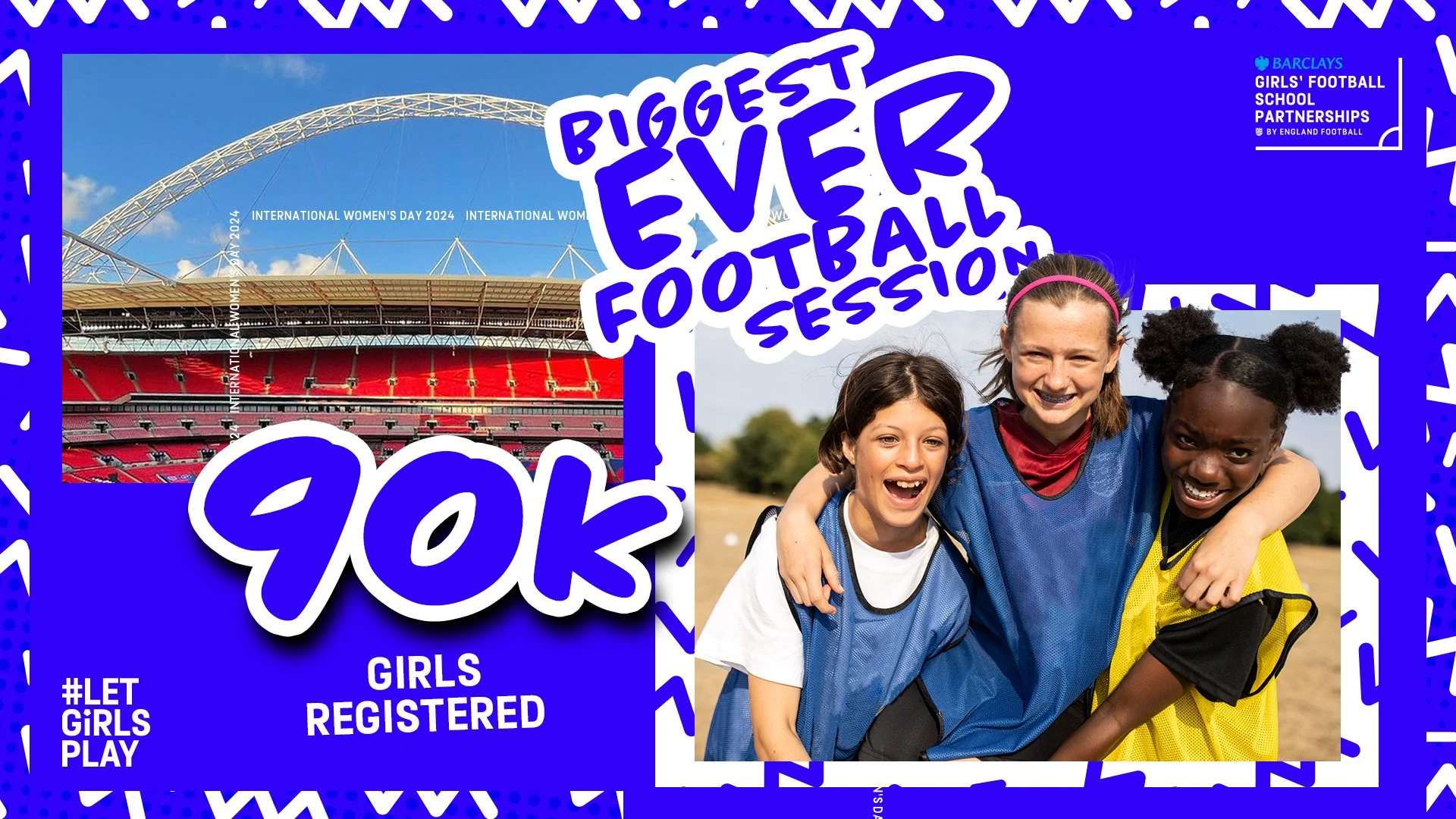 For the 2024 #LetGirlsPlay Biggest Ever Football Session, held on International Women’s Day, we evolved the campaign to feel bold, fun and unmissable. With a long rollout planned, we built a flexible visual system starting from a strong hero asset and expanding through adaptable core elements. The refreshed, energetic look helped drive the event to its largest participation yet, with an estimated 400,000 girls taking part.