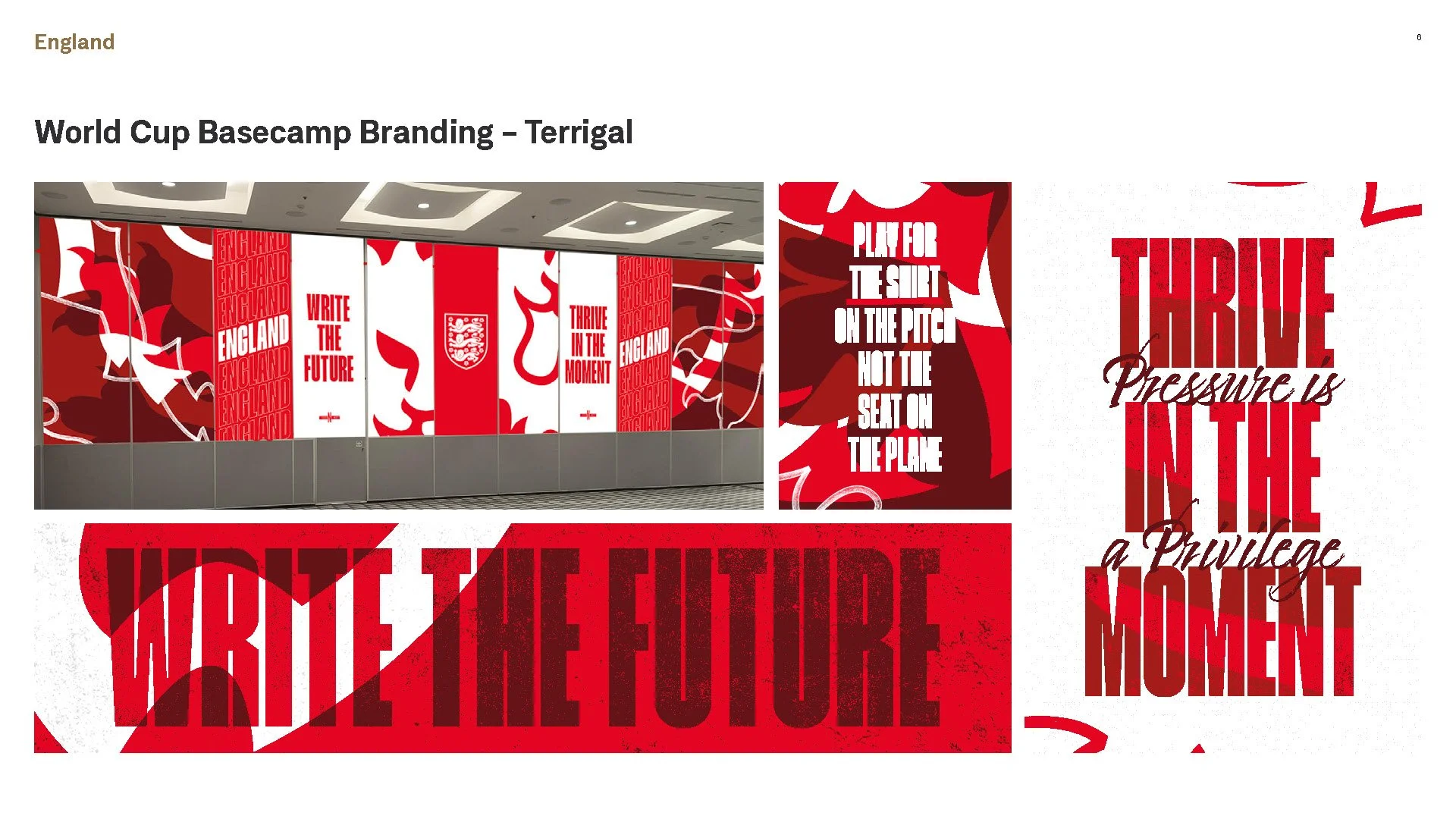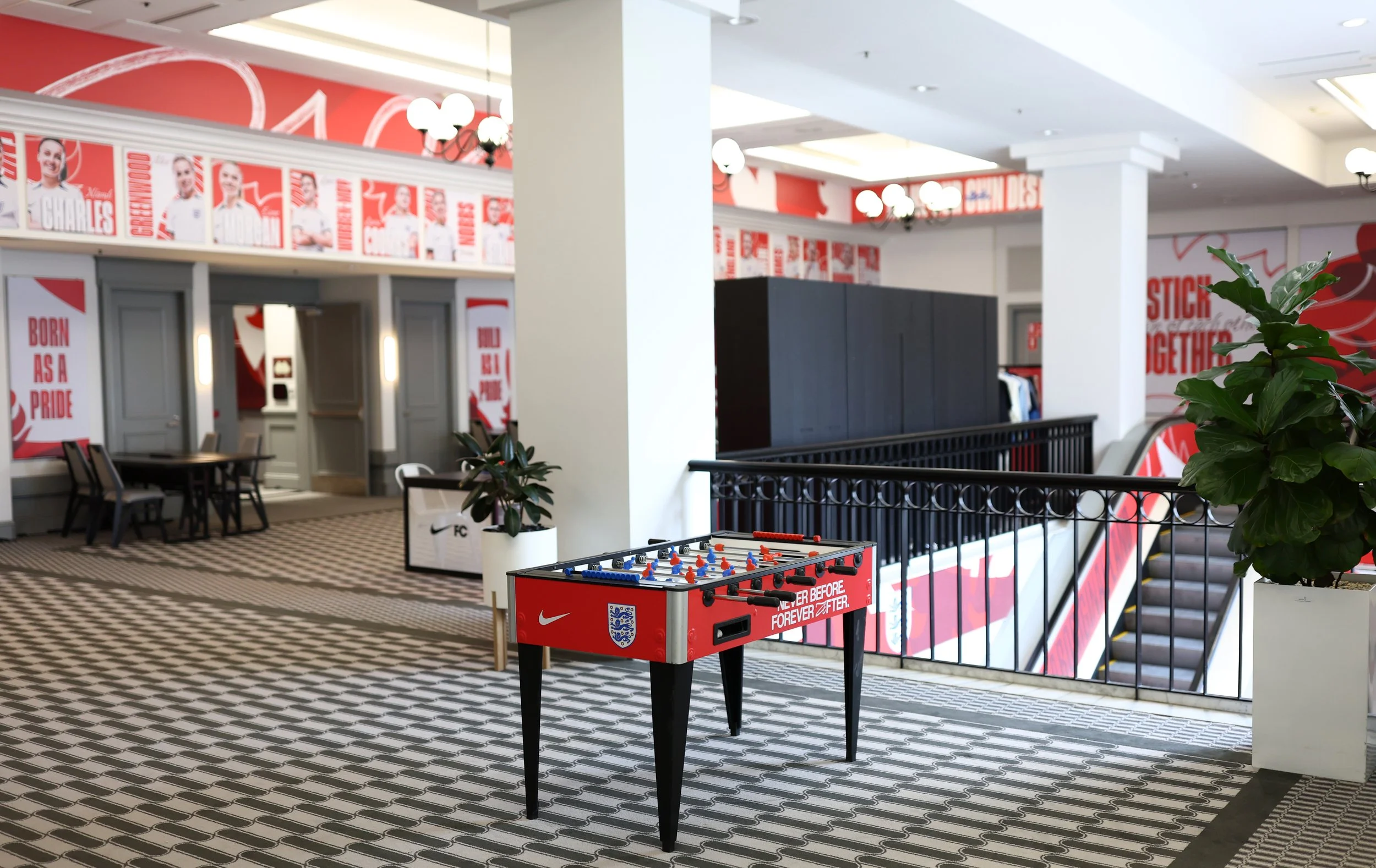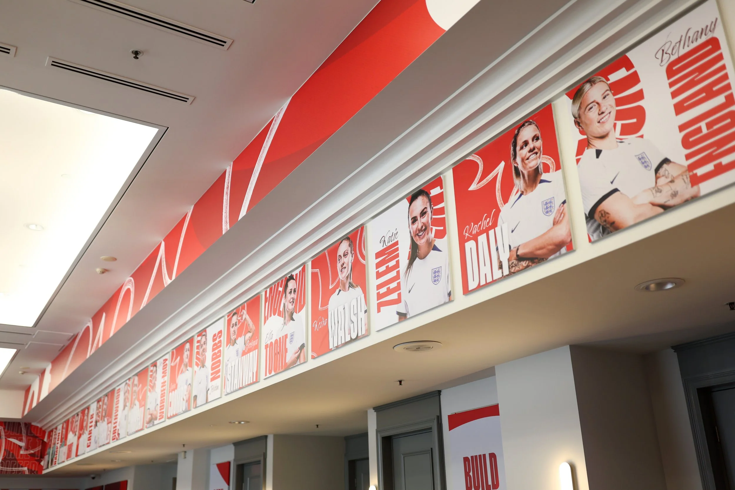 As Lead Designer, I helped deliver the first major rollout of the new England rebrand through the team’s hotel basecamp environments for the Women’s World Cup in Australia and New Zealand. With limited branding opportunities and challenging, clinical hotel interiors (especially at the final location) we created over 450 bespoke pieces of artwork to transform generic spaces into a true home for the squad. The result was a standout success, with staff noting how the environment helped support a winning mindset.